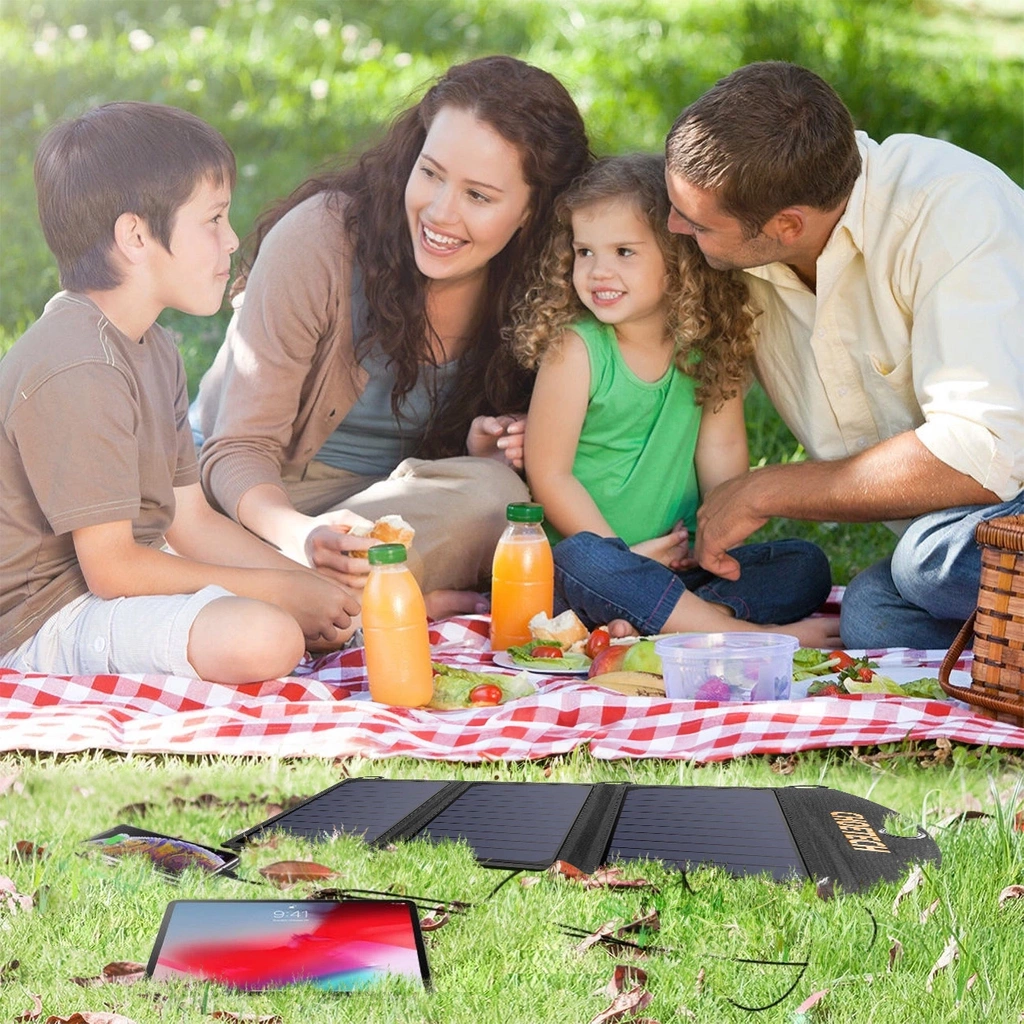 Ten 80-watowy panel solarny z ładowarką USB może naładować twoje urządzenia przez załączony port DC lub przez port DC do Anderson cable. Przenośny panel słoneczny jest świetnym wyborem na kemping, caravaning, a także stanowi dobre wsparcie dla miłośników dalekich wędrówek – górskich i nie tylko.